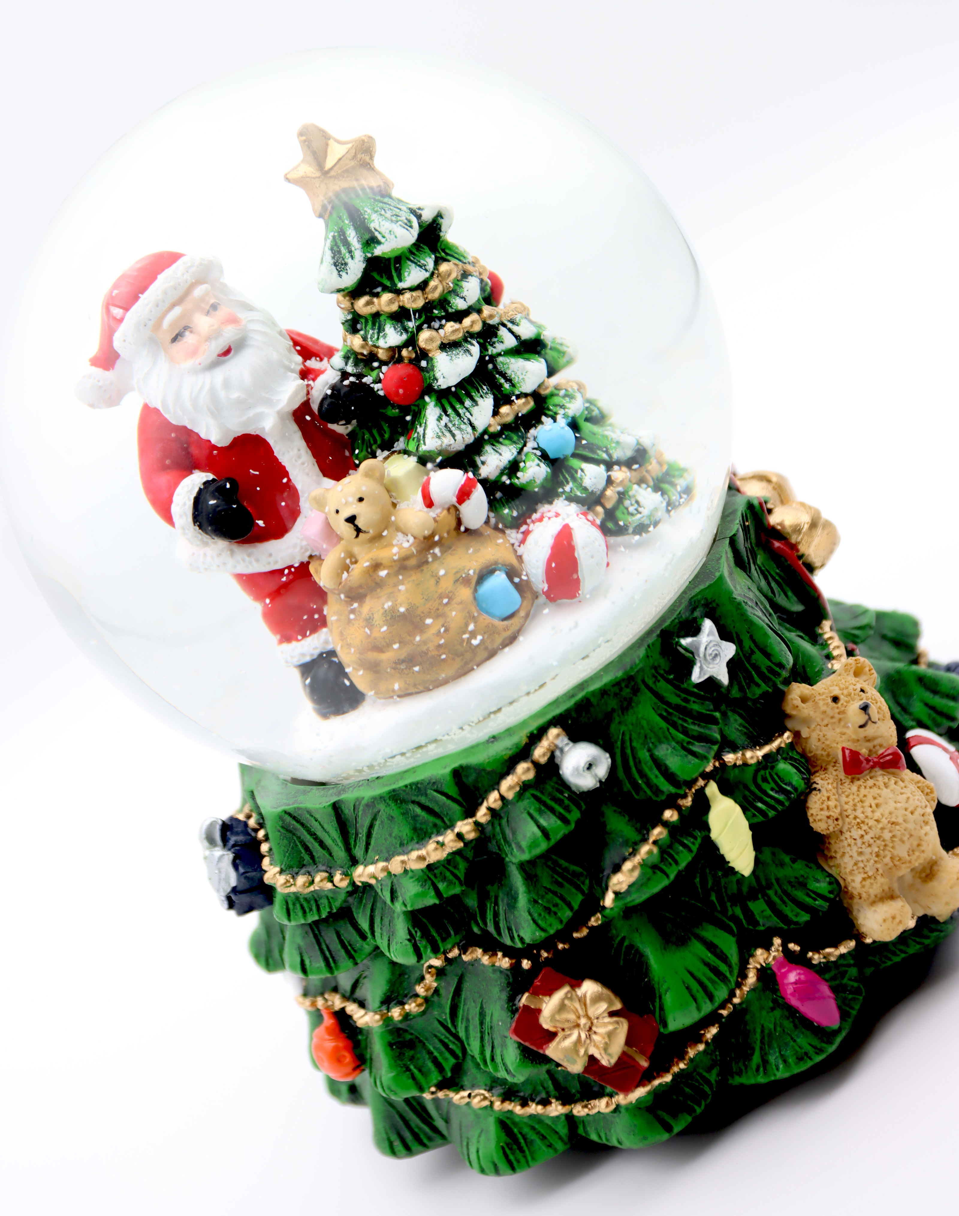 Fabricada en poliresina de alta calidad y cristal, la caja de música impresiona con una altura de unos 15 cm, el tamaño ideal para cualquier mesa de exposición o escaparate. El entrañable diseño de Papá Noel está rodeado de un remolino de reluciente "nieve", que baila suavemente a través del agua de la bola de nieve cuando se da cuerda a la caja de música. Este festín visual va acompañado de melodías navideñas clásicas que suenan al girar la caja de música, creando una atmósfera contemplativa.