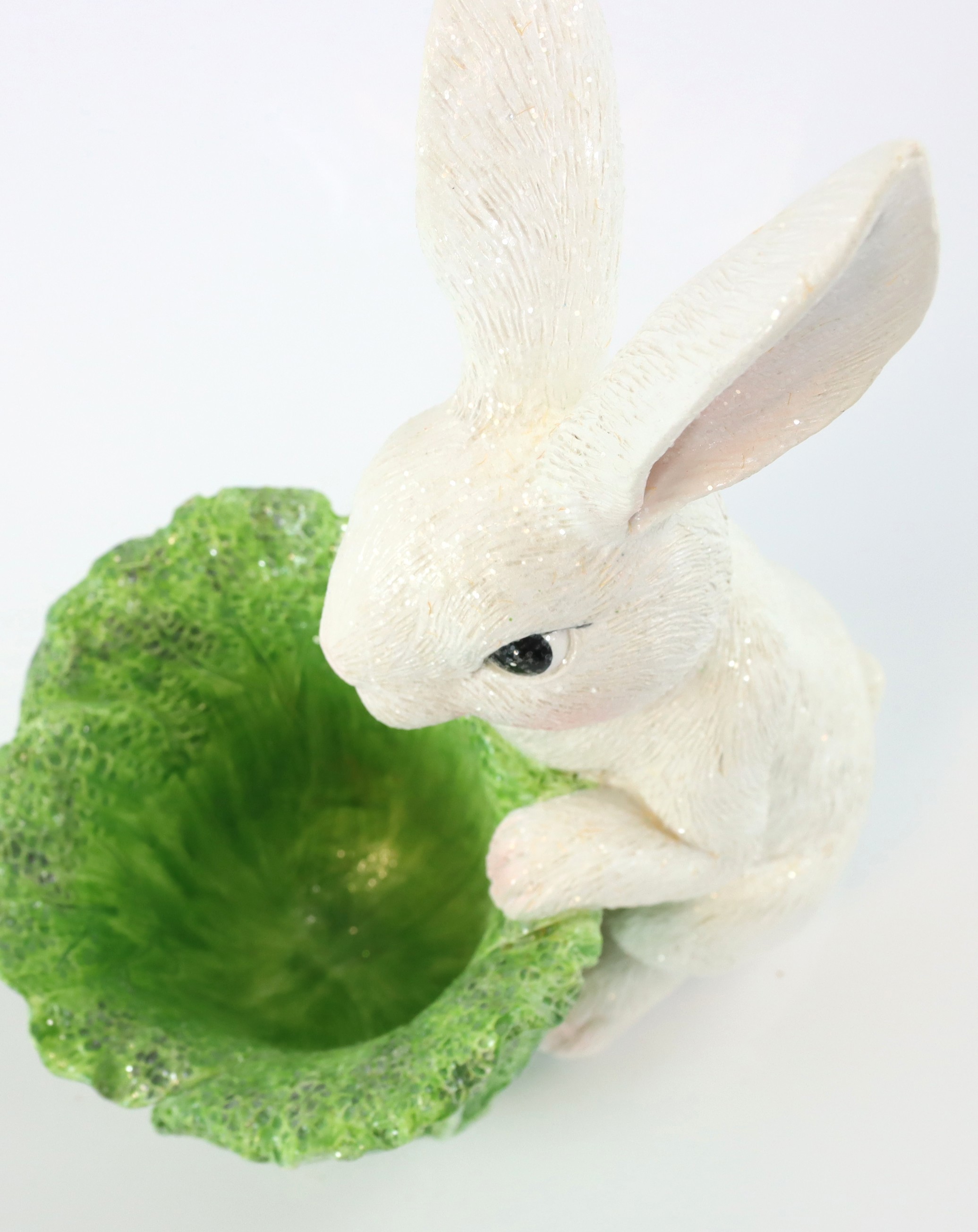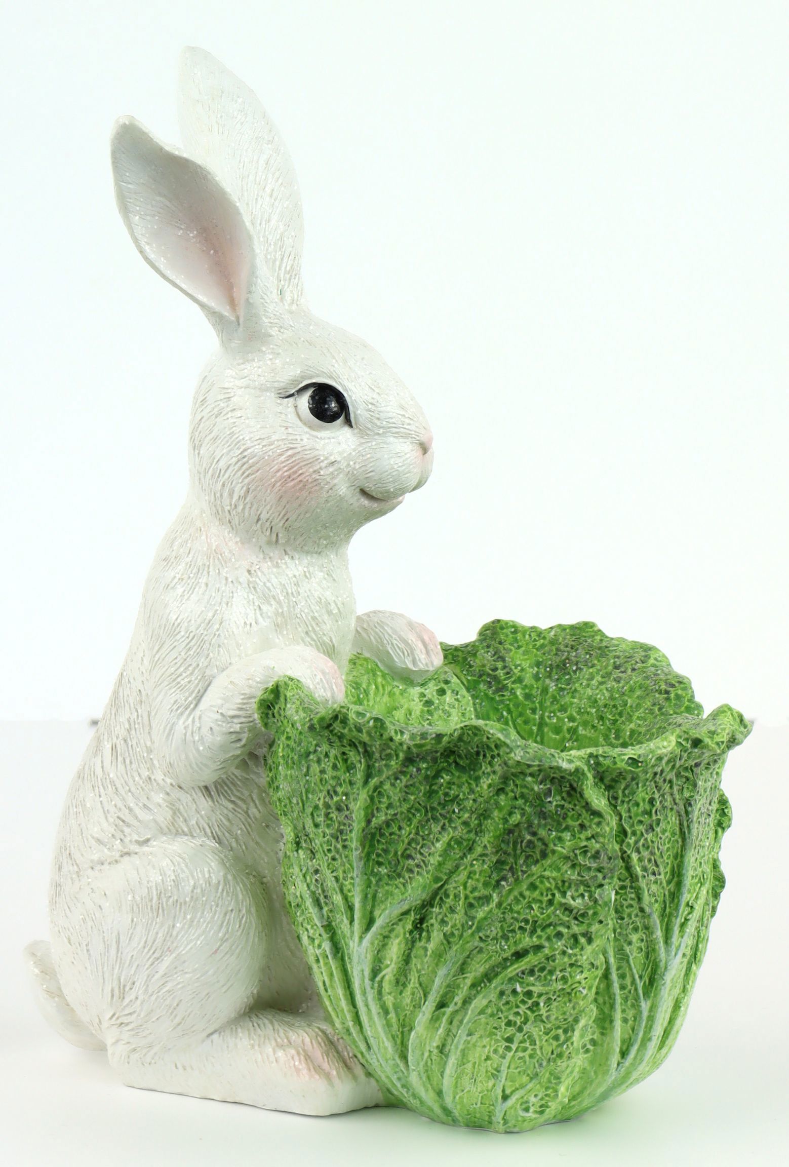 El detallado diseño del conejito con una frondosa cabeza de repollo en los brazos es un auténtico reclamo y despierta la alegría pascual tanto en niños como en adultos. Estos diseños únicos no sólo añaden valor a las decoraciones festivas, sino que también son un incentivo de compra para los clientes que buscan algo especial.