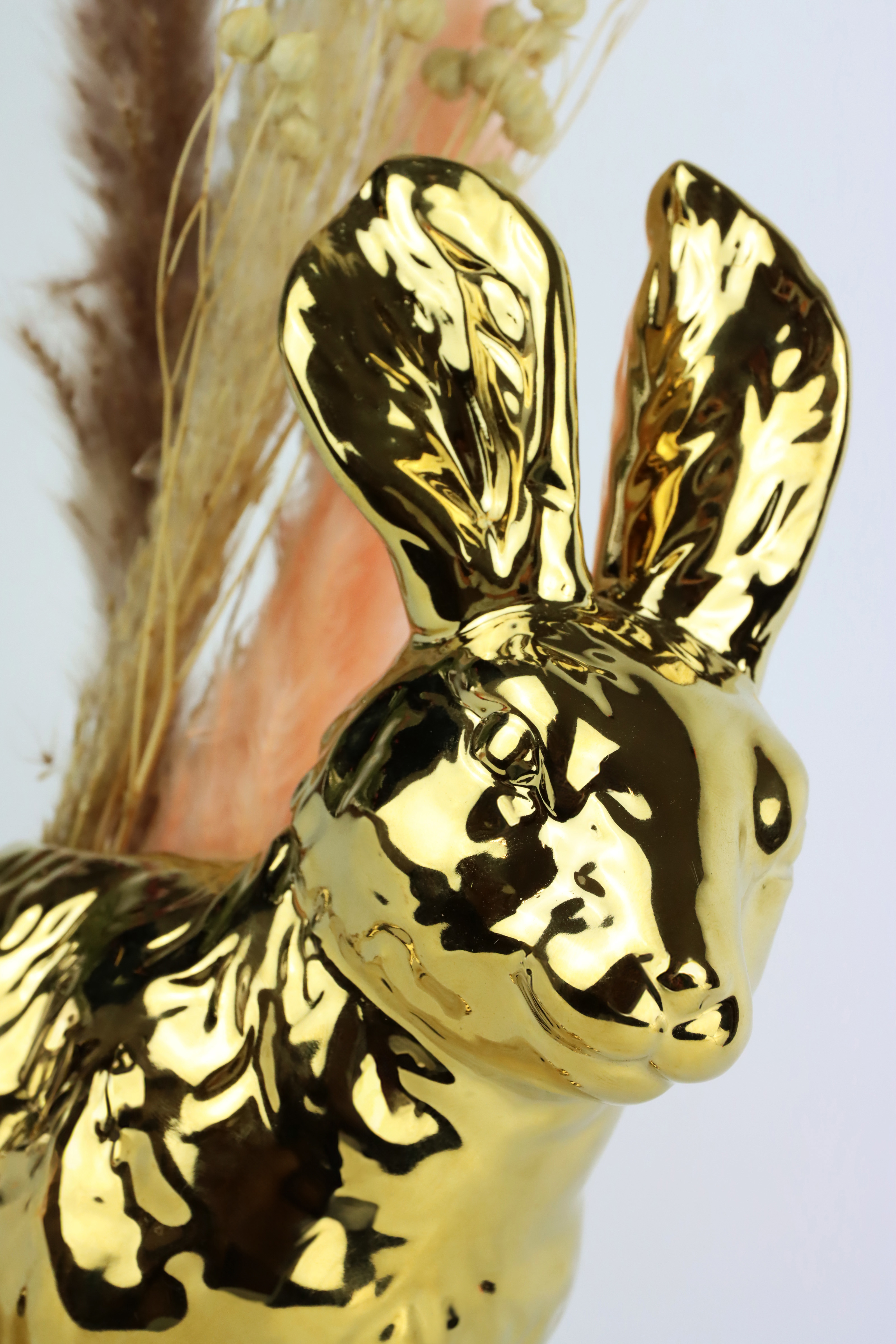 Seguro que entiende que sus clientes no sólo buscan jarrones decorativos, sino también historias inspiradoras y soluciones de decoración únicas para sus hogares. Con el jarrón "Golden Rabbit", está ofreciendo a sus compradores exactamente el producto que necesitan para hacer que sus espacios sean contemporáneos y festivos.
