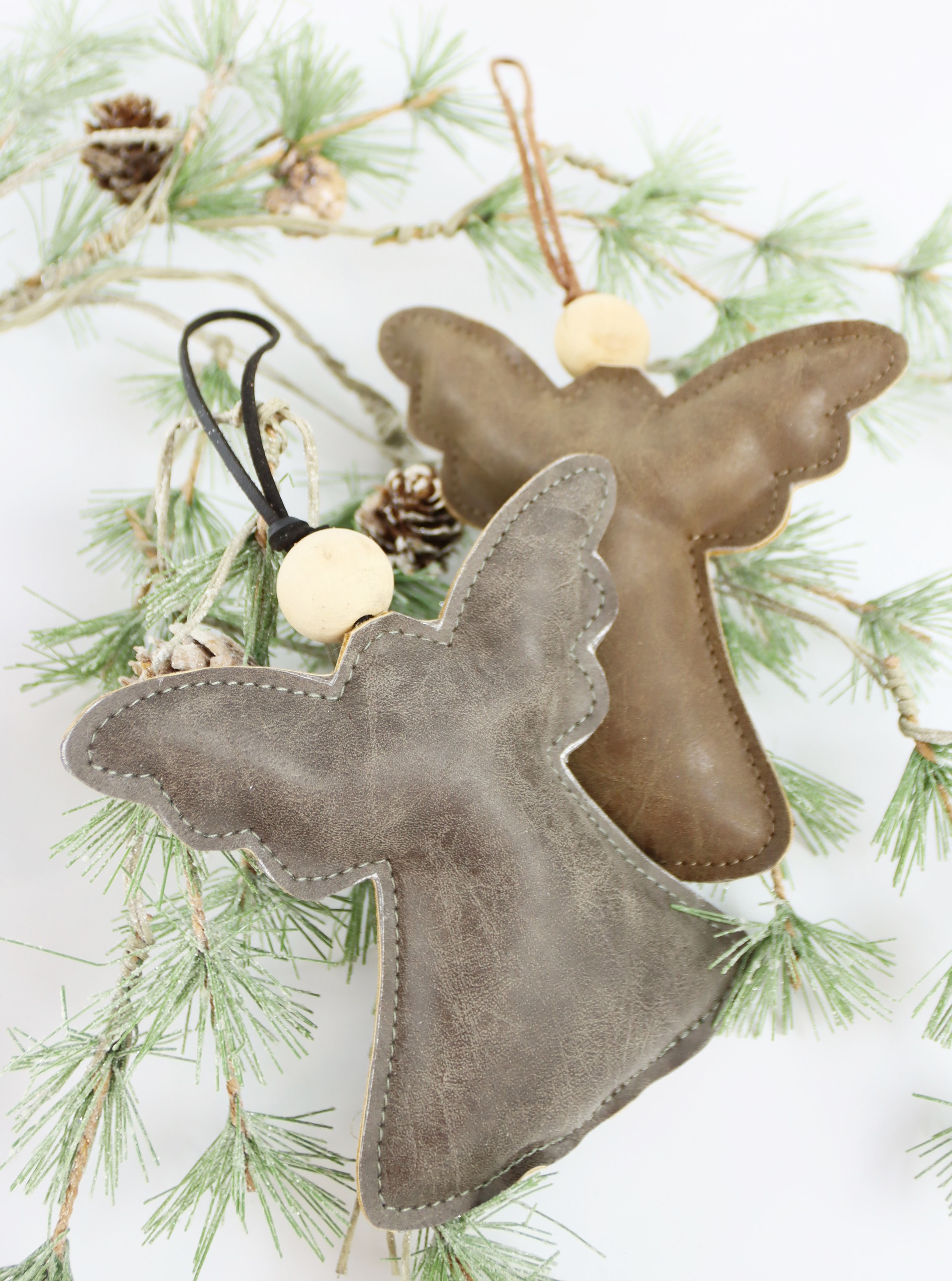 **Description du produit : pendentif en cuir "Ange" S/4 - Décoration de Noël stylée pour le commerce**
