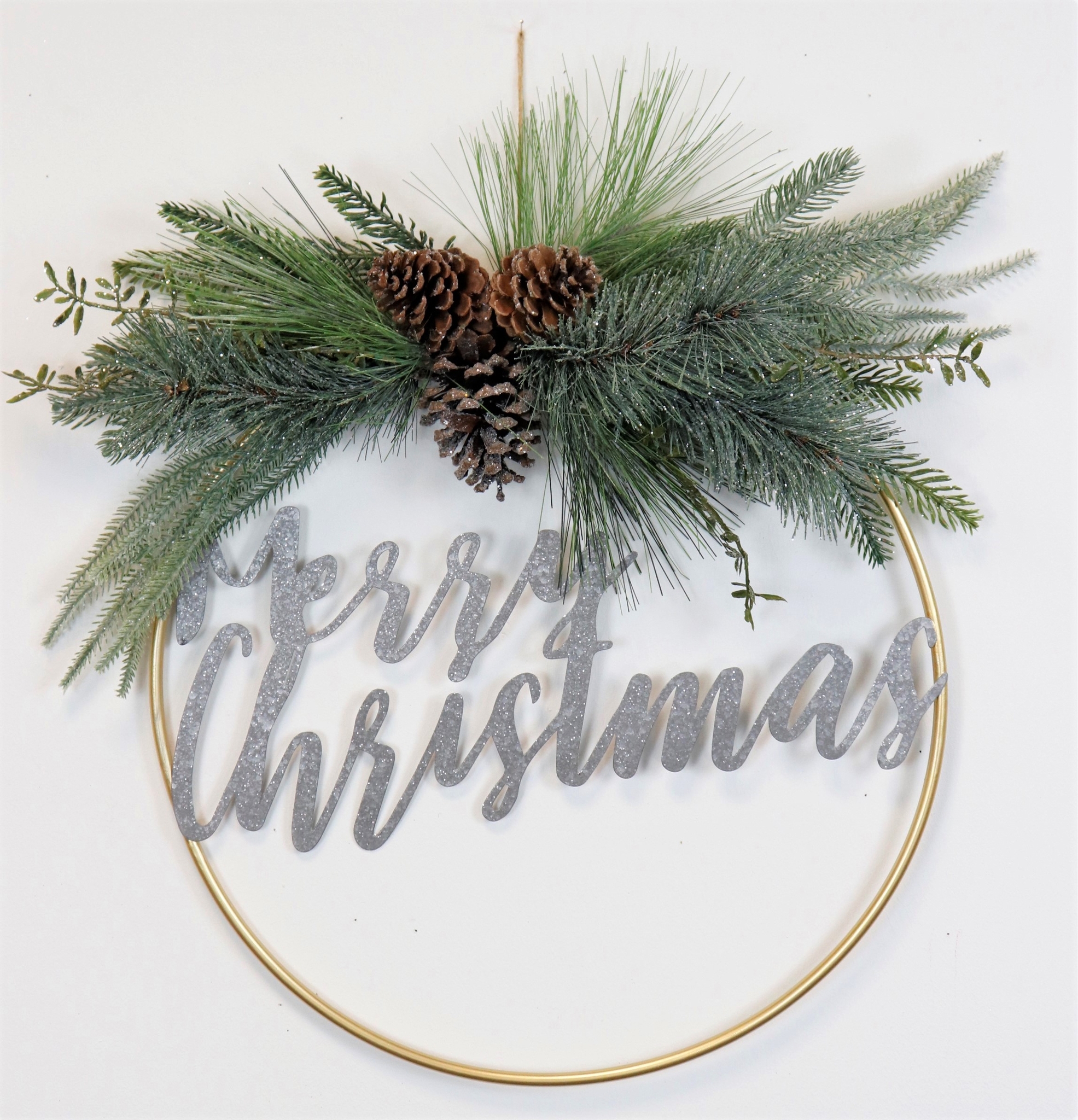 Vivez la période de Noël avec la magnifique couronne décorative "MERRY CHRISTMAS", qui constitue le complément parfait de tout intérieur stylé. Cette couronne décorative unique allie des éléments de conception traditionnels à un design moderne et convient donc parfaitement au commerce de détail stationnaire dans le domaine de l'habitat et du style de vie. Avec un diamètre de 45 cm, la couronne attire tous les regards et crée une ambiance festive qui ne manquera pas d'enthousiasmer vos clients.