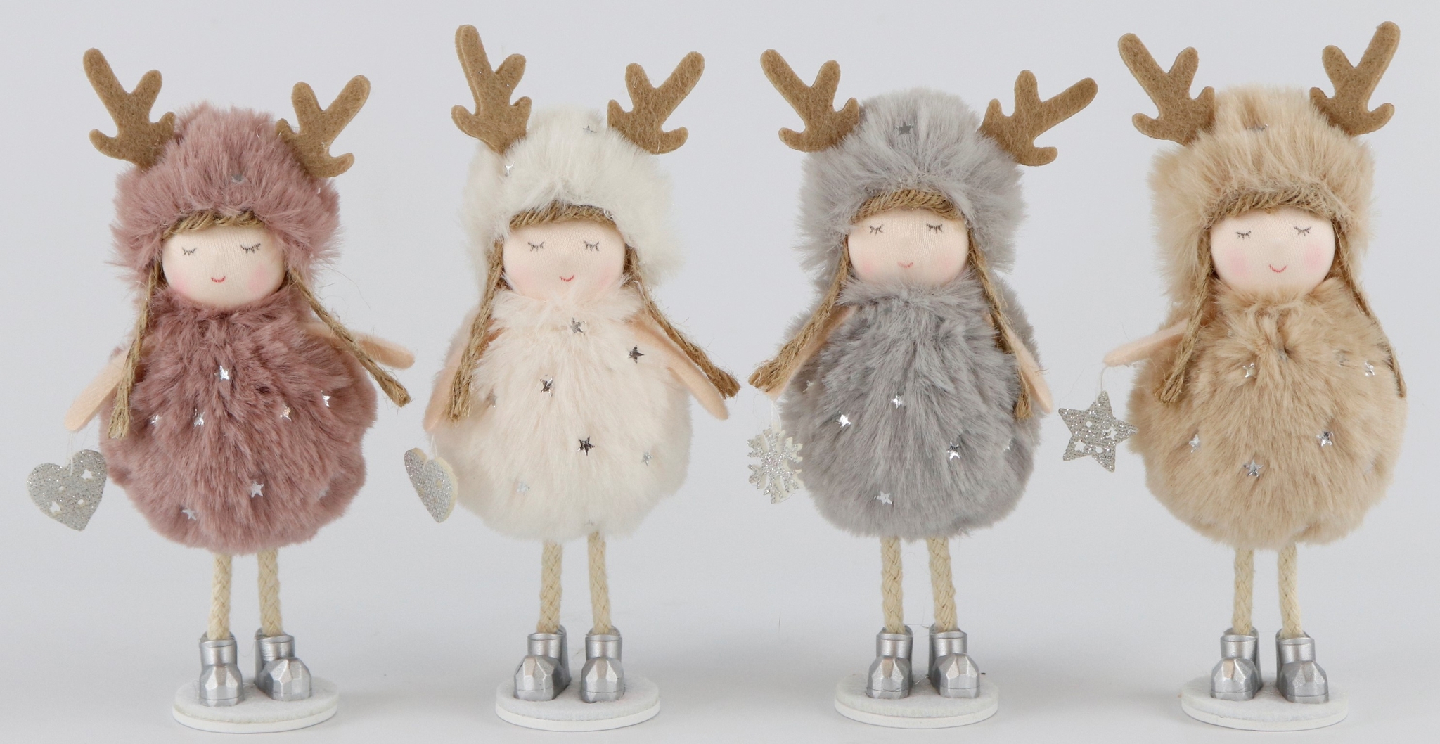 Chaque "fille de l'hiver" porte des bois remarquables qui soulignent l'ambiance hivernale et de Noël. Grâce au travail manuel minutieux et aux matériaux de qualité, chaque pièce est unique et de grande qualité. Elles impressionnent par leur amour du détail et s'offrent comme de charmants sujets de conversation pour vos clients.