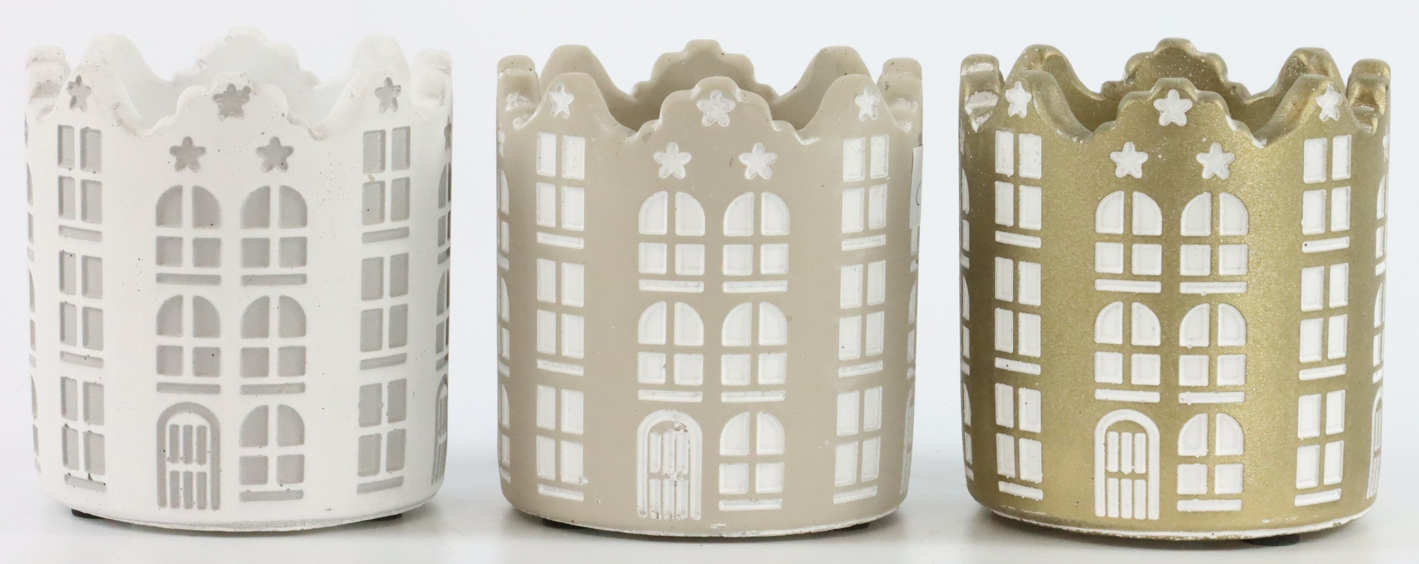 Découvrez notre ensemble exclusif de trois cache-pots au nom évocateur de "Township", spécialement conçu pour la période de Noël. Fabriqués en ciment robuste, ces cache-pots de qualité supérieure impressionnent par leur design urbain exceptionnel, qui confère à chaque pièce un charme à la fois urbain et festif. Avec une taille pratique d'environ 10 cm chacun, ces cache-pots s'adaptent parfaitement aux rebords de fenêtre, aux étagères ou comme point d'orgue sur la table de Noël.