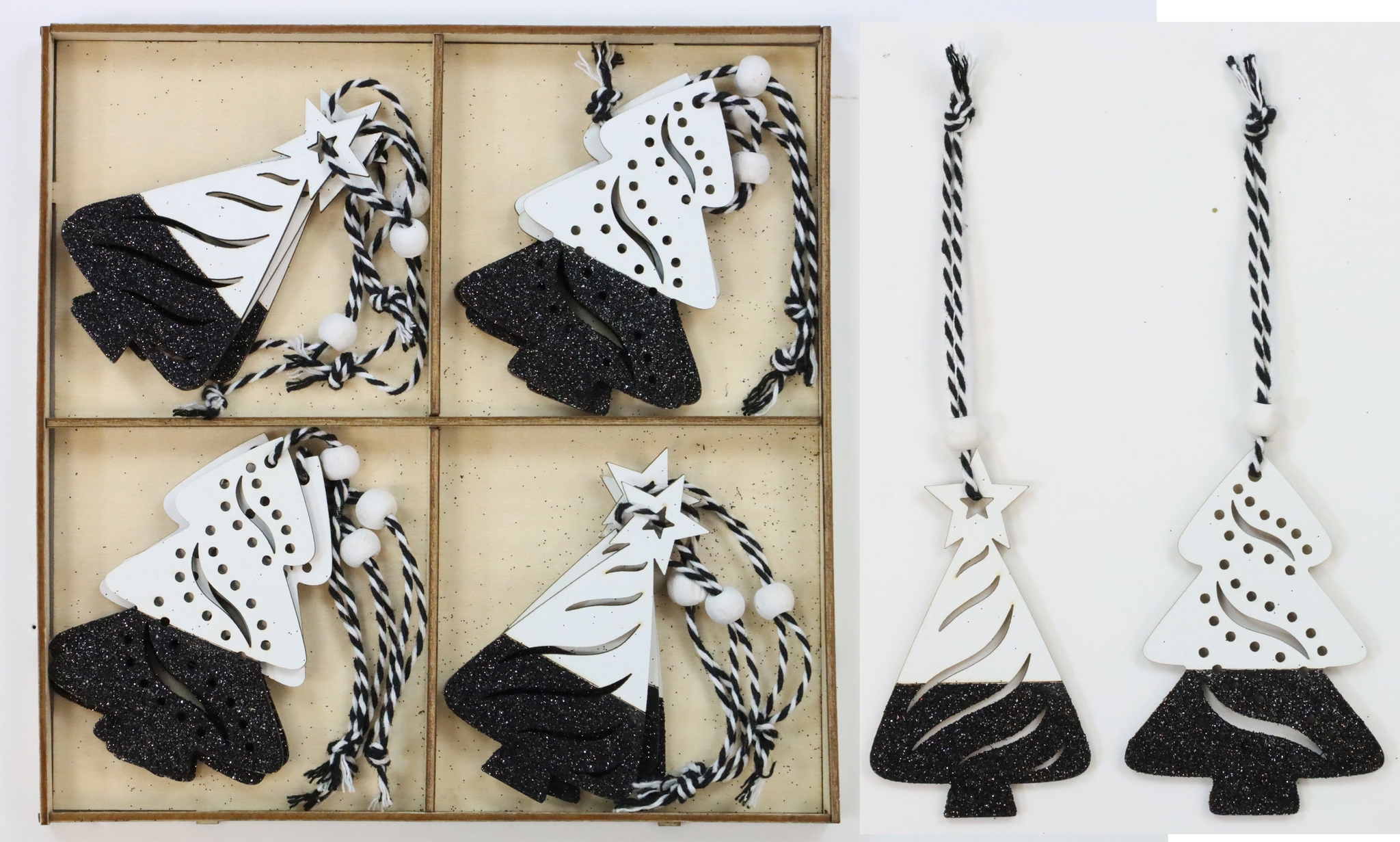 Donnez à votre commerce de détail stationnaire dans le domaine de l'habitat et du style de vie le charme parfait de Noël avec notre PENDENTIF EN BOÎTE "ARBRES" S/12. Ce set élégant contient 12 suspensions en bois artistiquement conçues en forme d'arbres, dans d'élégantes nuances de noir et de blanc. Chaque suspension mesure environ 8 cm, ce qui leur confère la taille idéale pour une présentation attrayante dans n'importe quel local commercial ou vitrine.