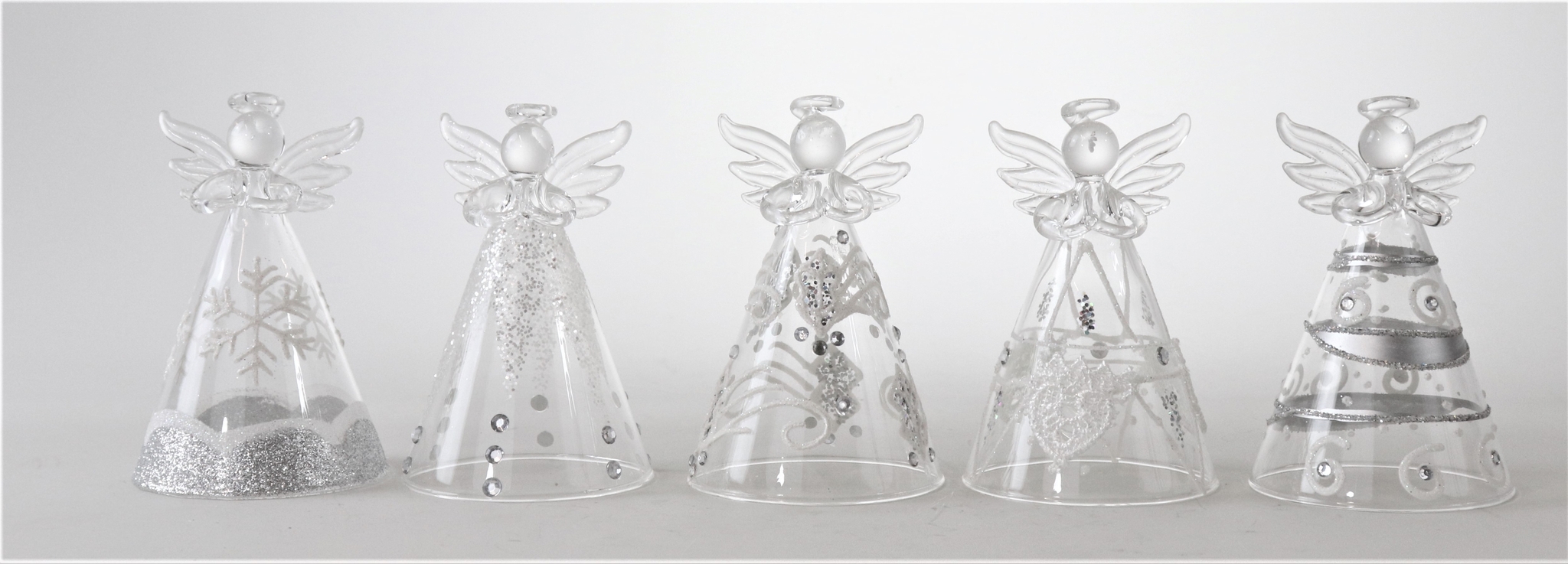 Mots-clés pertinents pour le référencement : Ange en verre Palais, décoration de Noël, B2B, commerce de détail stationnaire, habitat et style de vie, set de 5 pièces, set d'anges en verre, ange de Noël en verre, référence 8446.