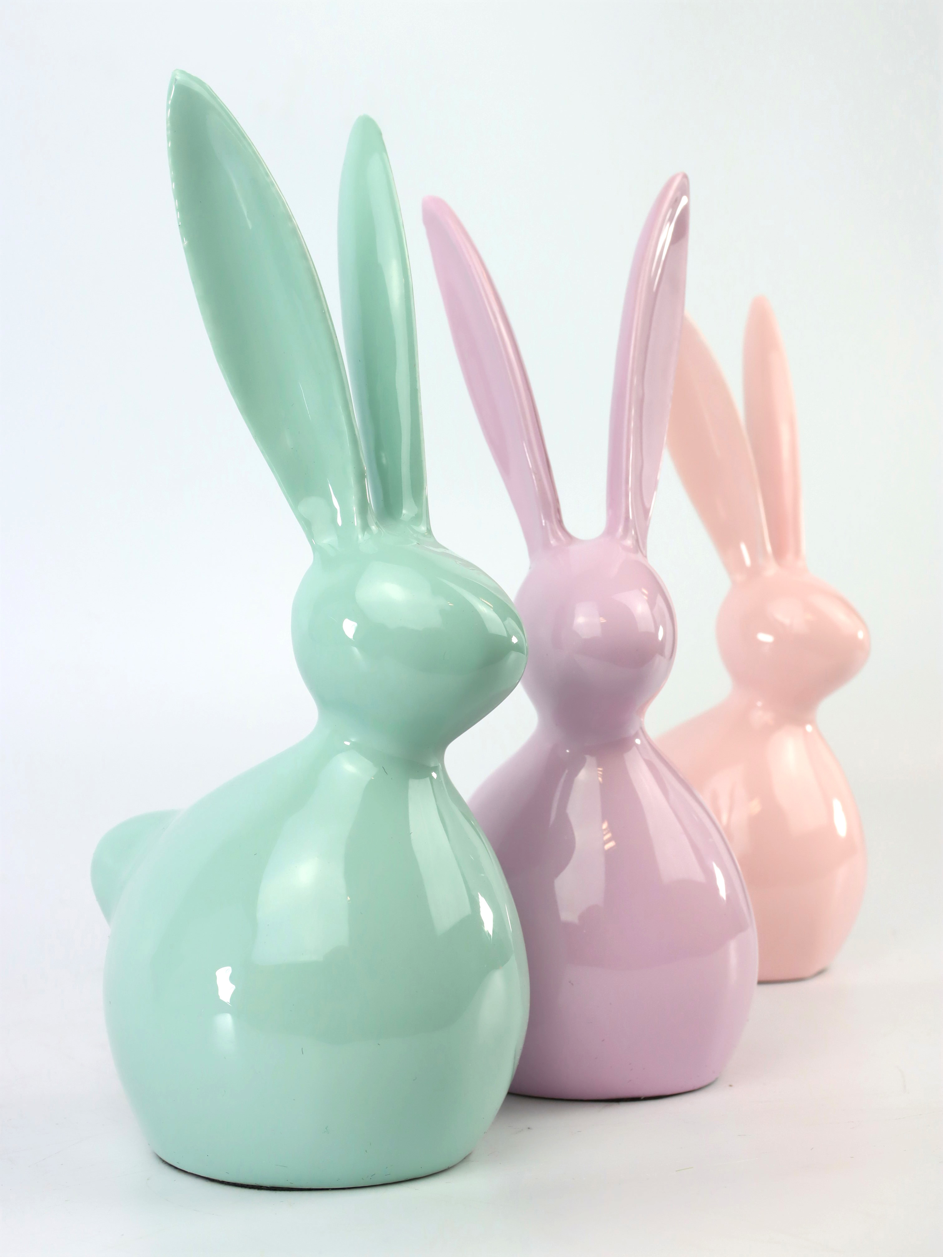 - Set de trois lapins en métal de haute qualité aux couleurs pastel harmonieuses