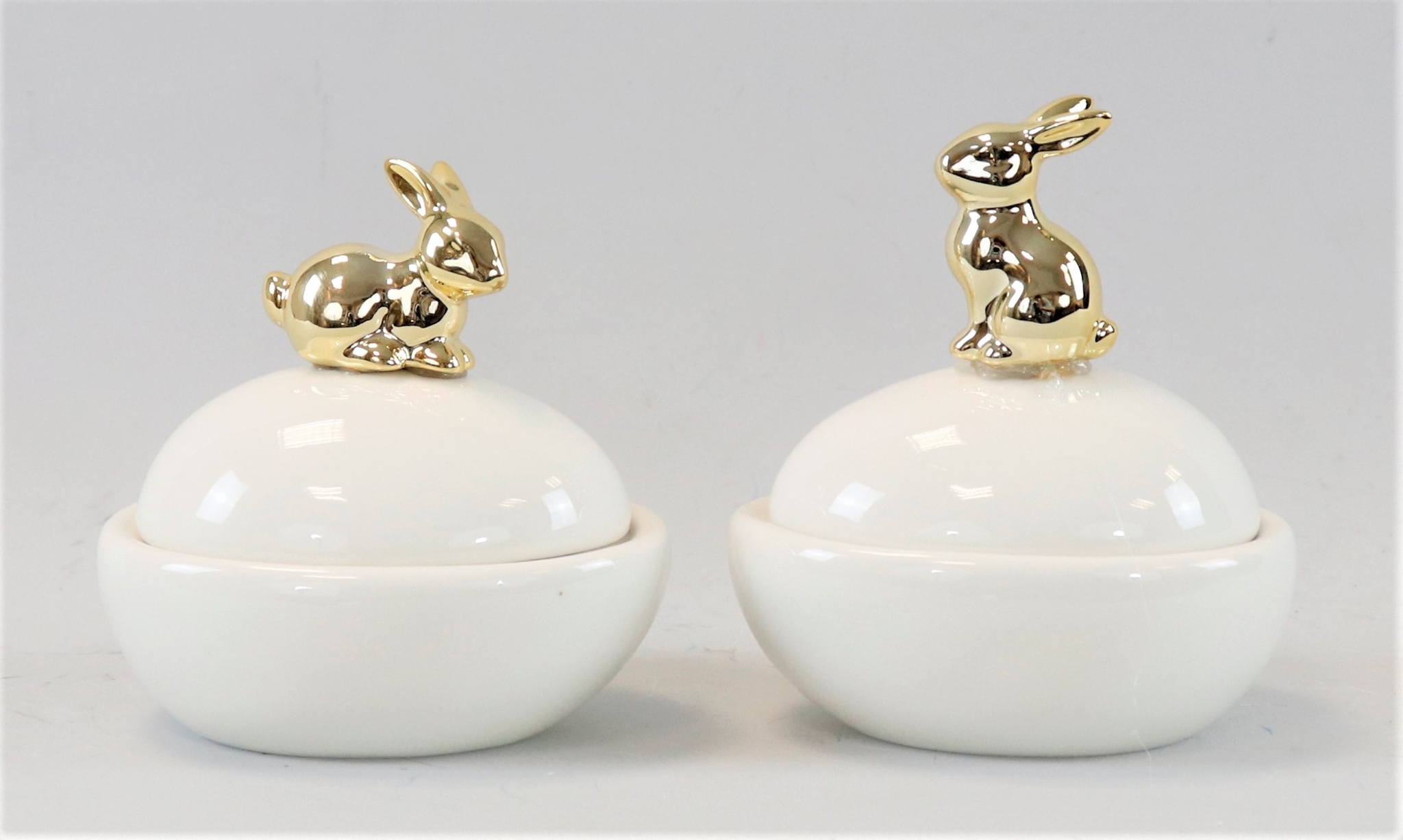 - Noble set de 2 pièces en céramique avec motif de lapin doré