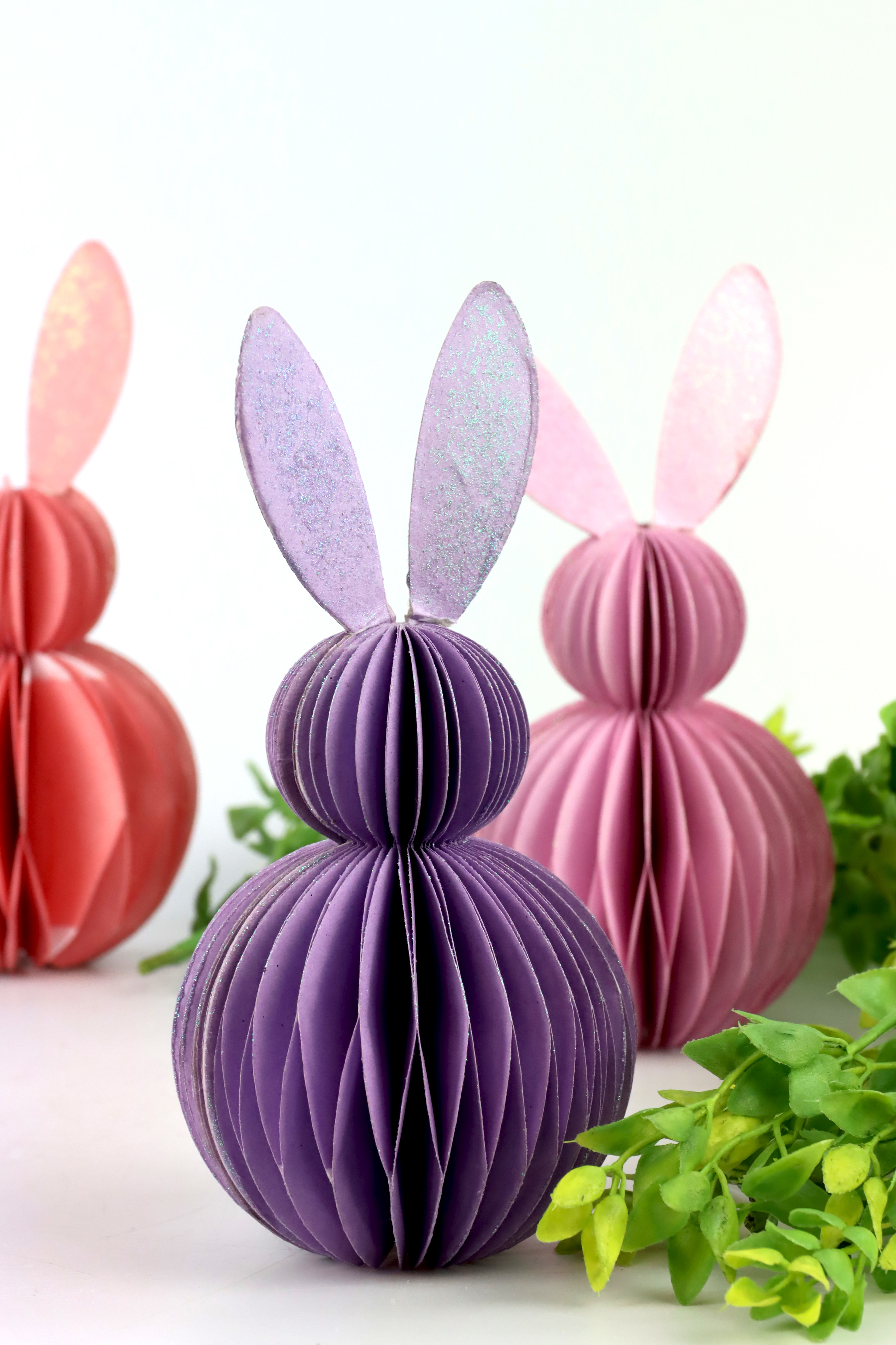 FR**Ambiance pascale enchanteresse avec le set de lapins décoratifs "Honeycomb" dans les tons lilas**.